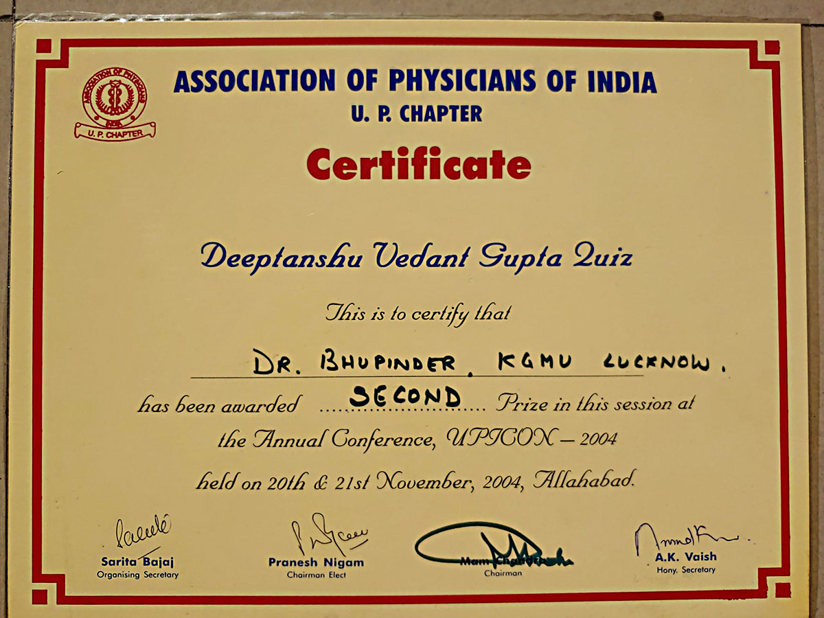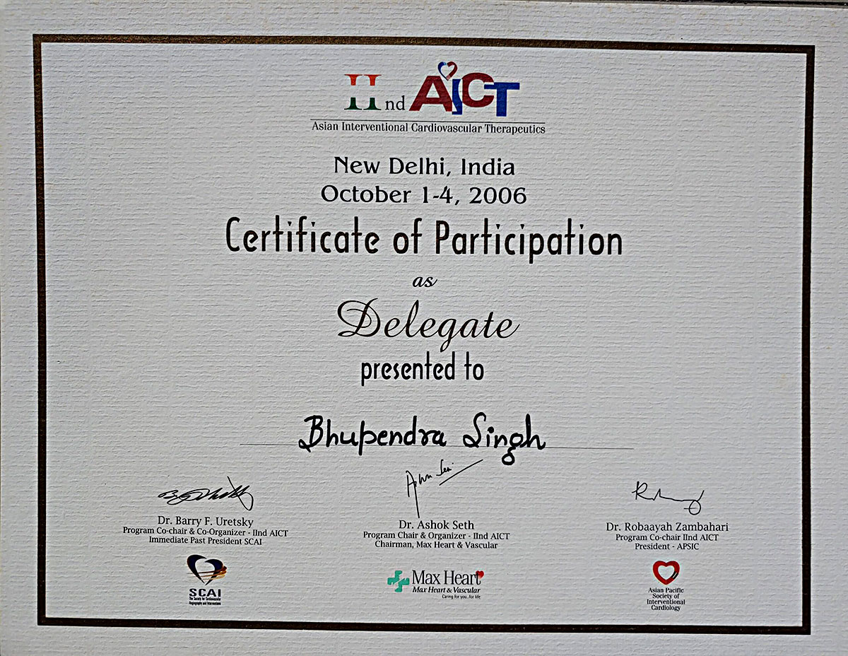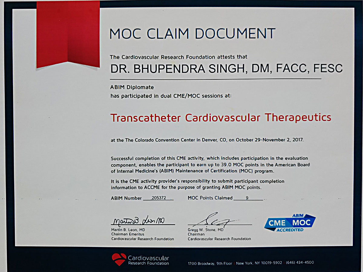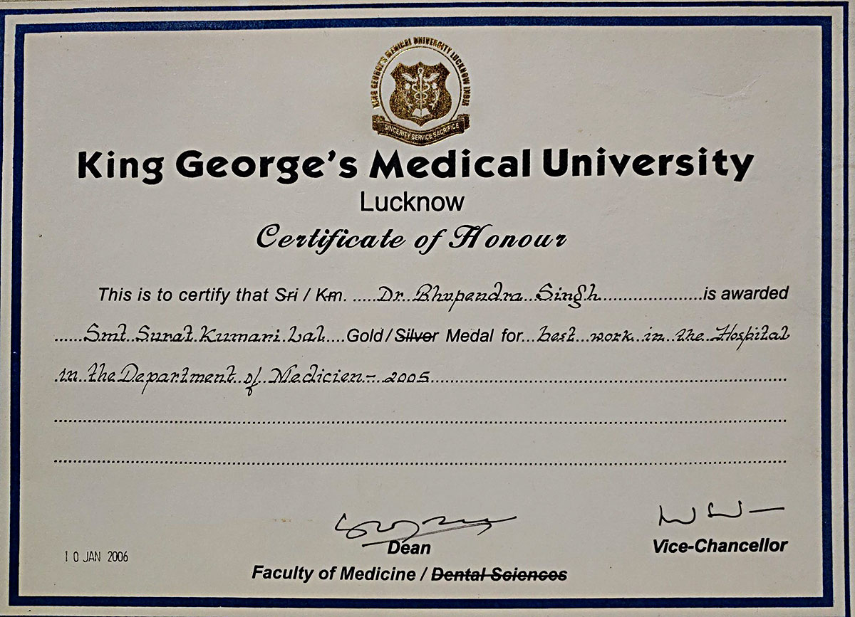 Dr Singh graduated and post graduated with certificate of honour from the prestigious King George Medical College (KGMC) Lucknow .He was awarded Gold Medal for his M.D. He received his D.M.(Cardiology) training from the KGMC Lucknow.